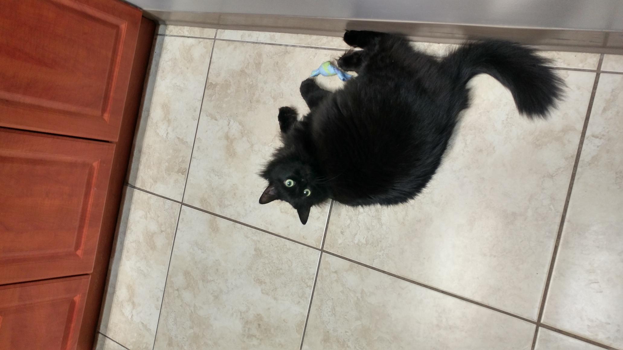 This might be a silly idea but do you play with her? Even if you do I think I might try more play. Sticks with a string on the end that I can whip around, drag around are very popular at our house. So are those long nylon ties used for wrapping and I wiggle them under door frames and mats. Foamie balls too and two cats will bring them to me to throw again. They all enjoy their plays much more if it's me playing with them. Boredom could be thing leadting to stress and hair loss. More play with YOU might help. Awww, she's black. My favourite colour.