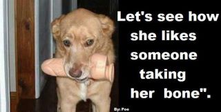 Wasn't sure if this pic would be inappropriate. If it is please remove it. I have to say if I had a dog meet me at the door with this 'bone' I would probably pee myself laughing