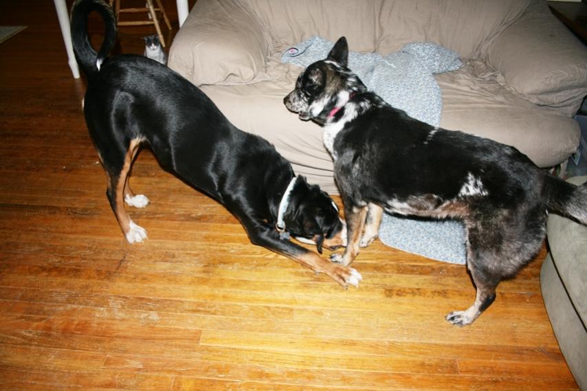 . Of course she isn't the boss but it looks like she has some very good dog play skills .