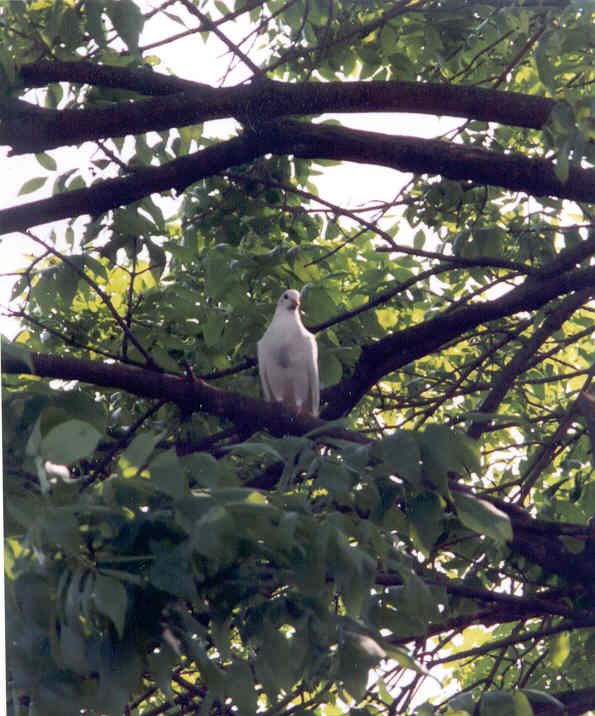 Rita,no other than the grey you see,she is all white,I don't think she's a dove,she hangs out with the rest of the pigeons and I have them in all colors.Doves are usually more slender and smaller..