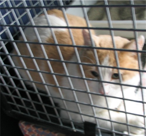 Hope someone recognizes him and wants him back - or that someone wants him, period! At least you got him off the streets in this cold. I'm certain he thanks you for that, he looks calm enough in the last pic, all snuggled in his cage. |