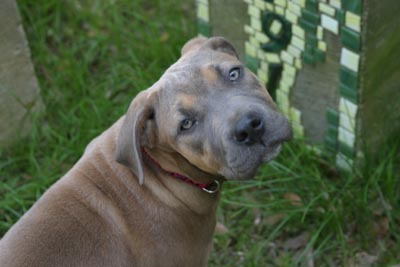 I just got a new puppy. I probably had a stupid moment but it will all work out. I had my heart set on a great dane 1-2 years old. There are no local rescues and most of the rescues I contacted wouldn't adopt outside their local area. I had been looking for 8 months. I had researched the breed throroughly and I spend a lot of time with my son's girlfriend's great dane and adore him. The last dog I had was a bouvier 10 years ago (he was stolen out of my yard) so I understand having a big dog. I responded to an ad in the local paper for a 13 month old brindle dane. I thought I would go check out the dog, make a decision, then come home and call the fence company (not putting up a 6' fence unless I know I need one). I am still considering getting him if nobody else is willing to take him soon but while I was there I fell in love with the 3.5 month old puppy. Honestly I'm not a puppy person but I made the instant decision to muddle through house breaking, etc, and brought her home. The owner only had her 2 weeks and decided to get rid of 5 of her 7 dogs (doberman, great dane, etc) and keep the aggressive sharpei. This was a single mom with 3 kids, a full time job, part time student, 7 dogs, 2 cats, and a litter of kittens. Her 2 year old was playing with a full prescription bottle and she had no problem with it. So I offered her about half of what she claims she paid for the puppy and got her out of that zoo. Now for the problem.... I know NOTHING about mastiffs. I'm not even certain she is mastiff and great dane. Just took her word for it. She's 3.5 months and 33 lbs (which is on the low end of normal on the weight charts for great danes from what I can find). The vet tech said her eyes look like a pit bull and I can see it a little but I don't think she is. The vet just said "Can't ever tell" then went back to oooh and ahhhing over her saying she was the sweetest thing he'd ever met and how could anyone not love her. She is SO laid back and pliable. She sleeps about 20 hours a day I think. She follows every step I make, waking up if I leave the room, following me, then napping when she gets to where I went. She looks a lot great dane and has the loose skin around her jaw and neck like a neo mastiff. She has a black sheen to her but you can tell she is turning from black to brown. I think I read somewhere that mastiffs do that. She has the personality of a mastiff. If you even slightly raise your voice at her she pouts and ignores you and becomes stubborn but she is very smart and understands no and drop and some other basic commands just in her few days here. She also snores and has gas and I read that is typical in mastiffs. So my question.... I'm reading up on mastiffs trying to figure out a game plan for training. With a mix, how do you decide which breed to follow the advice for? What should I be feeding her? I bought a small bag of science diet puppy food for big dogs and she hates it. Anybody with mastiffs have advice? Or great danes.... Rebecca |