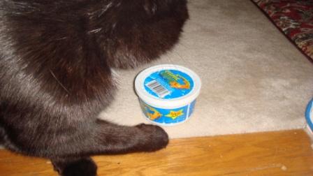 Onnie discovered where I put the catnip tub