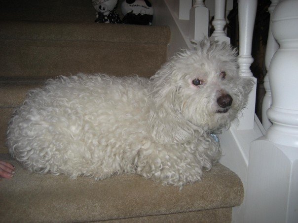 Last month, on March 18th 2007, my dog was stolen. Well..he was most likely stolen or somebody found him and did not realize that he was my family's dog. Spencer is a small white Bichon Frise. He is mostly DEAF. He is an eight year old neutered male. He has curly fur when it is long and the rims around his eyes are mostly pink. He has a fading blue breeder's tatoo on the inside of his ear. He has a long nose (some people think he is a poodle). He was last seen wearing a blue collar with a picture of yellow bones. A blue vaccination tag was attatched. He went missing from National Estates in Woodbridge Ontario. If you know where Spencer is could you please contact me. Carly Guglielmin (905) 851-1418 email: carlyg@yorku.ca There will be a $$ reward and No questions asked. If you want you can take him to Northview Pet Hospital on Weston Road and Langstaff in Woodbridge |