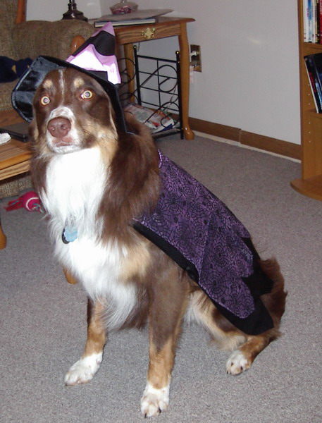 Hahaha, I'm glad she looks like she doesn't mind the hat - she hates it! But I should at least be happy she's fine wearing the costume unlike the other two! Willow has such a beautiful smile, she looks so proud posing