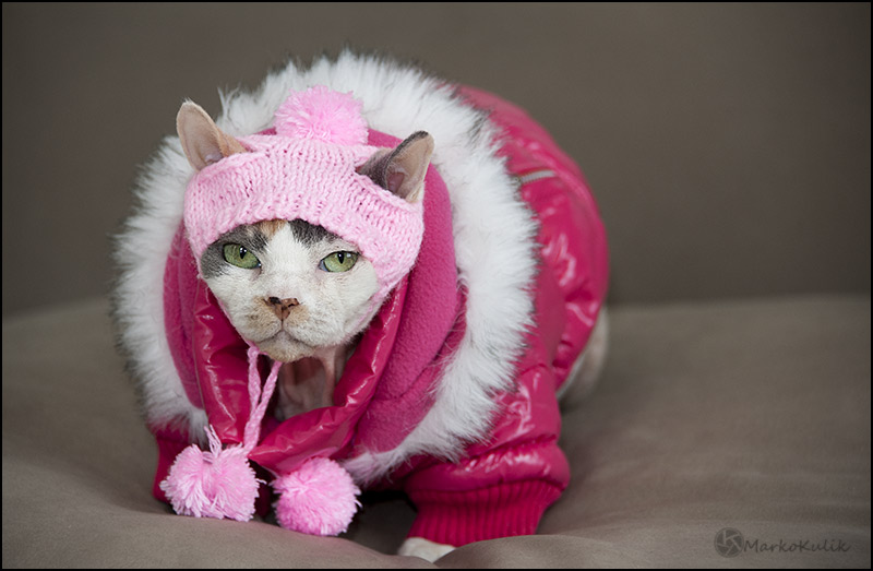 It wouldn't be fair to Baci just to post Twiggy's torture, so here's baci's winter wear photo